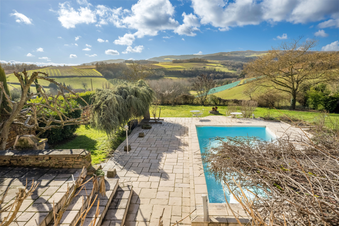 NORD LYON,BEAUJOLAIS PIERRES DOREES,PROPRIETE XIXème, 340 M² HAB, 5 CHAMBRES, TERRAIN, PISCINE. VUE IMPRENABLE