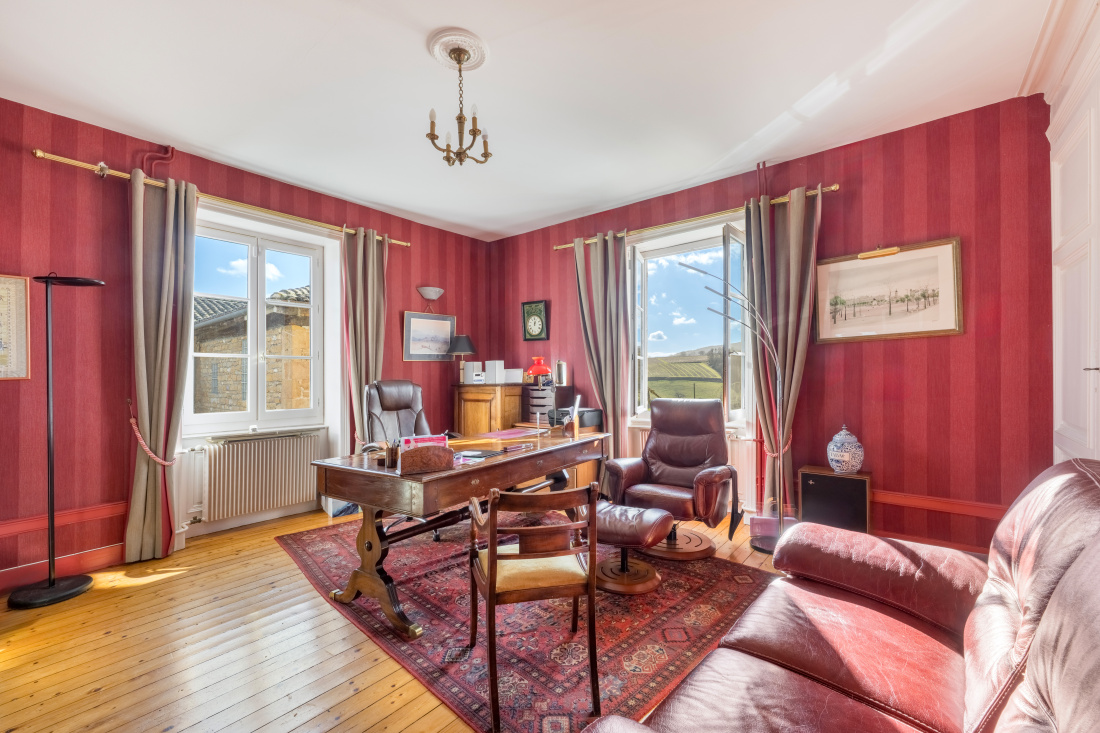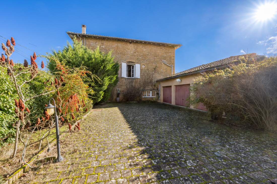 Coeur Beaujolais pierres dorées, proche Villefranche sur saône,Trés belle propriété de famille en pierres située dans une impasse au calme et dans un petit hameau absolument charmant.Cette jolie maison, accessible par 2 cours intérieures se déploie sur 3 niveaux: Au rez de chaussée ( desservi par un bel escalier en pierre) nous découvrons les pièces de vie:une vaste entrée traversante nous amène dans une grande cuisine authentique et lumineuse, un bureau, un salon avec cheminée et une salle à manger. A l'étage: Un grand hall et sa jolie voûte en pierre, 5 chambres, 2 salles d'eau et 1 salle de bain.Trés belle charpente apparente. Au rez de jardin:un salon de réception et sa cuisine ouverte donnant sur la terrasse et la piscine au sud ainsi que sur la cour intérieure, un salon billard, une cave à vins, une salle d'eau + Wc, chaufferie et rangements. Le tout complété par un garage de 70 m² (3 voitures, 2 portes automatiques) accessible par la 2 ème cour. Magnifique emplacement ( assez rare), exposition idéale: est-sud et ouest: Trés beaux couchers de soleil. Terrain clos et plat de 6251M², vue imprenable. Cette propriété de famille est proche du centre du village, de Villefranche sur Saône et toutes ses commodités: commerces, écoles, accés A6 et A89. Véritable havre de paix, tranquillité absolue. Tél:06 72 55 94 80