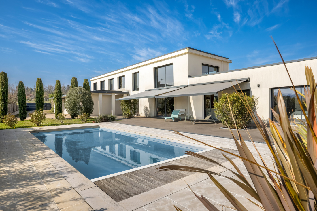 NORD LYON, BEAUJOLAIS, MAISON CONTEMPORAINE, 300 M² HAB, TERRAIN CLOS DE 2235 M², PISCINE.