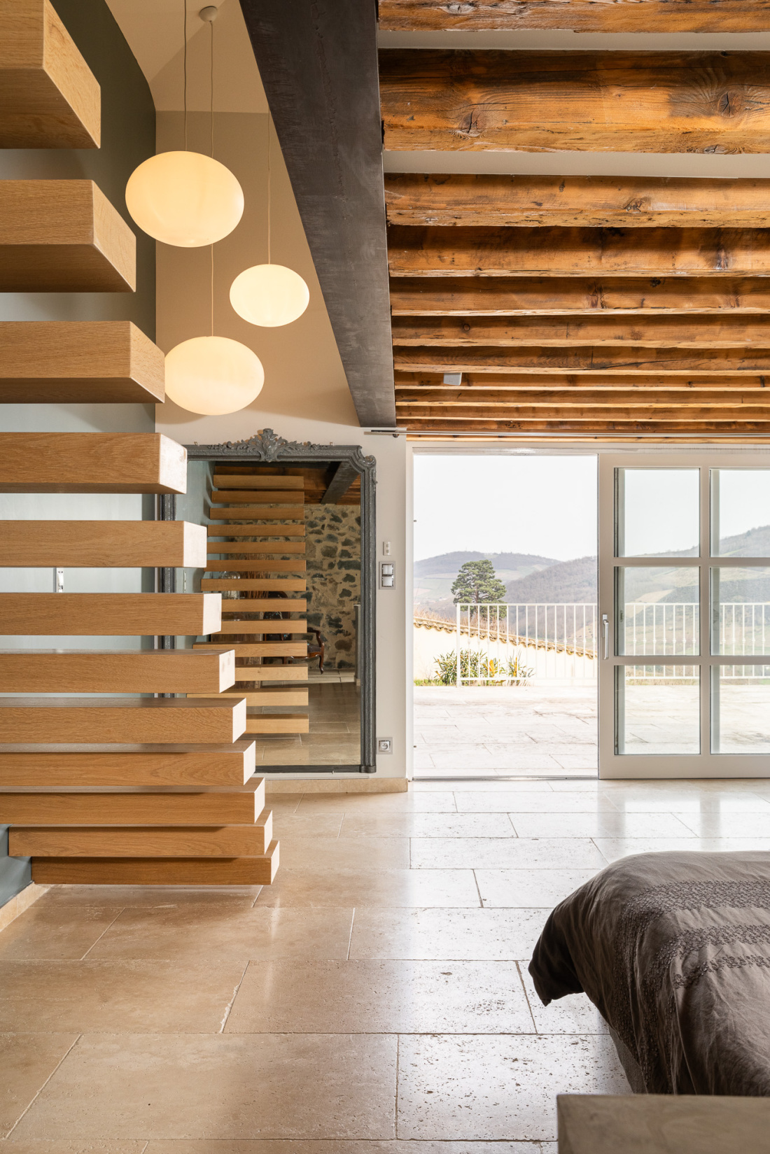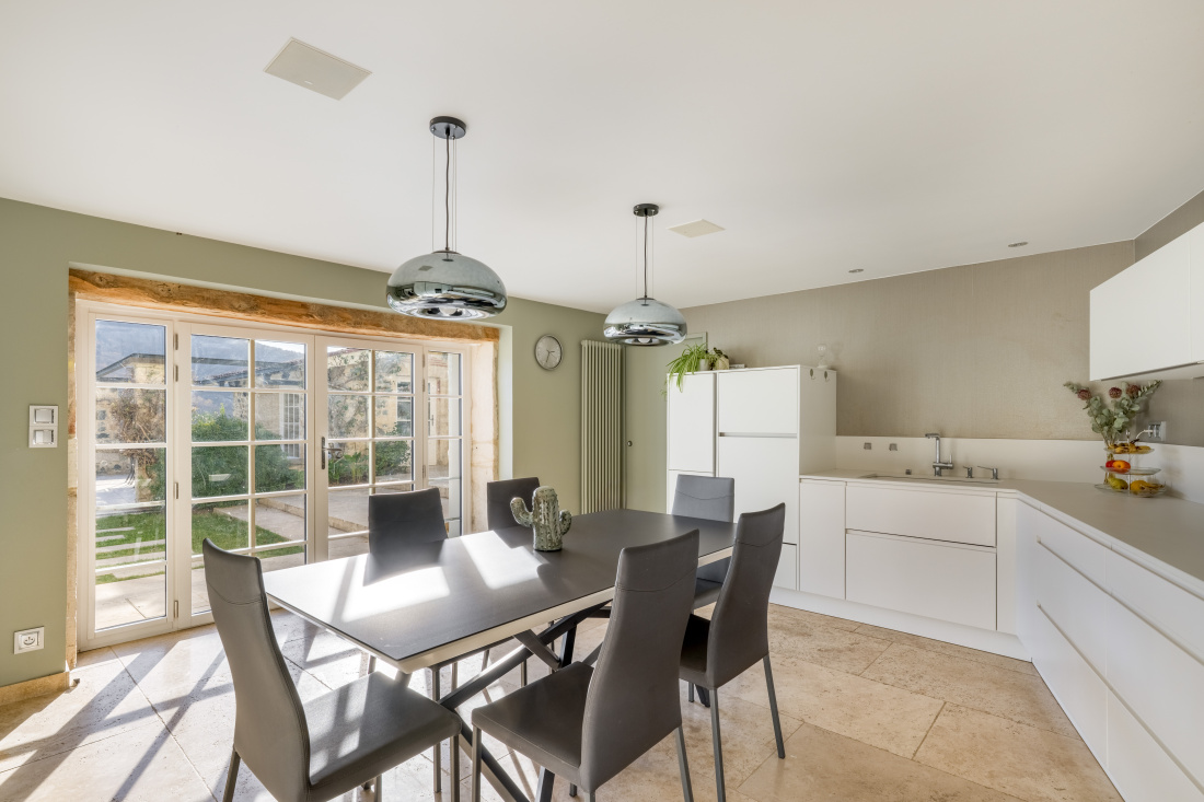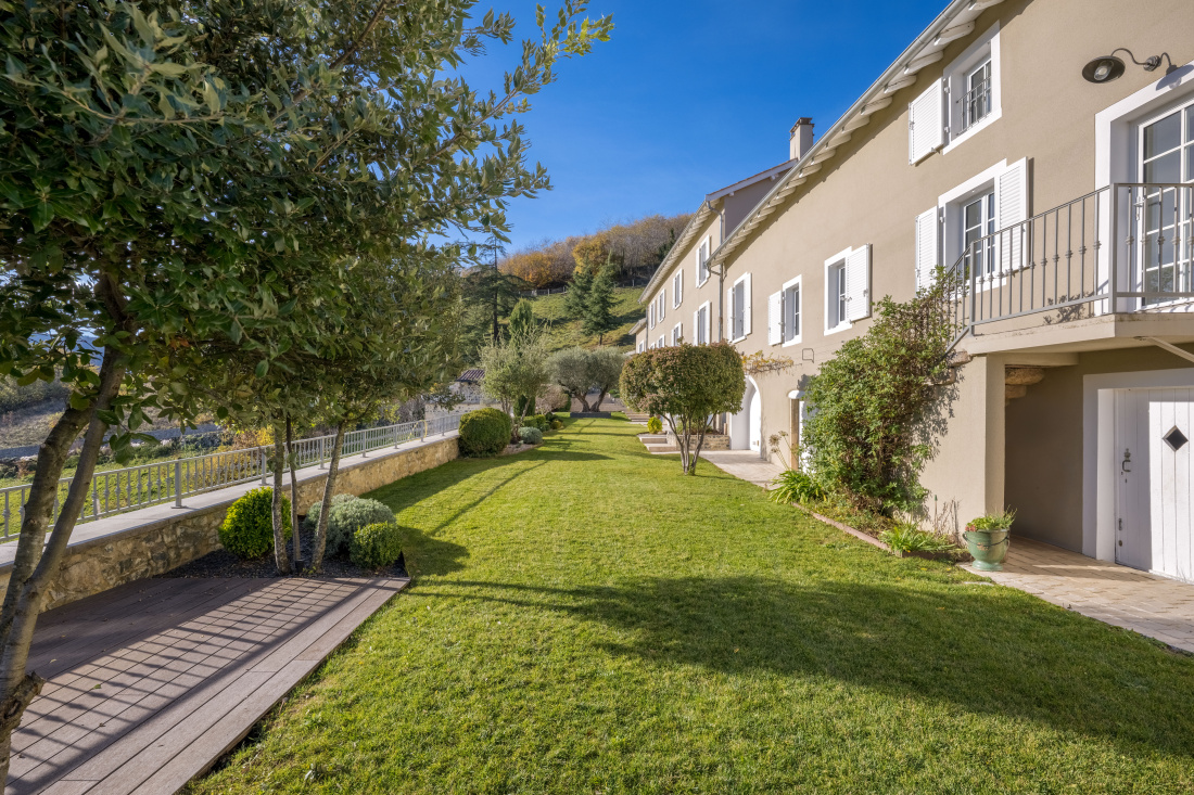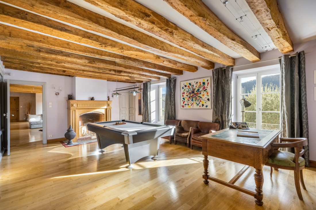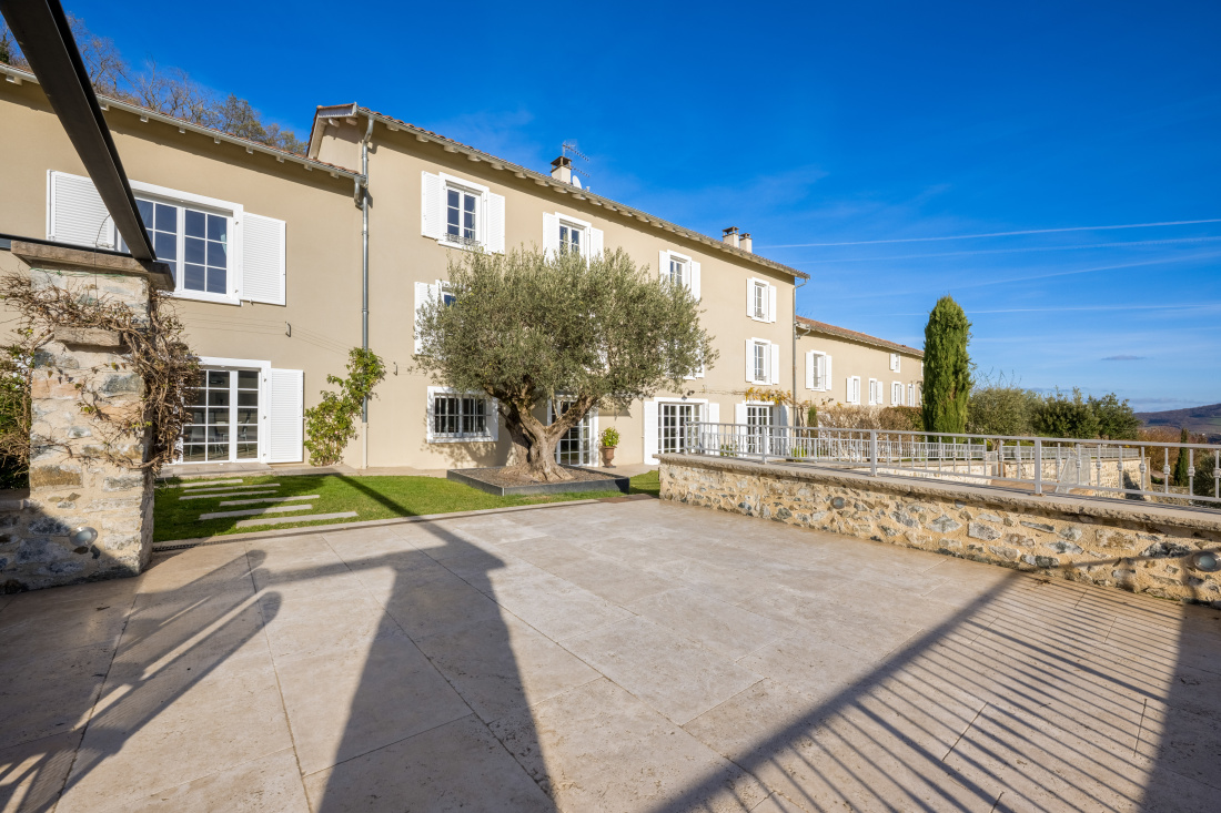 Au coeur du Beaujolais, ce magnifique domaine en pierres édifié en position dominante crée un décor unique et rare. Il comprend une propriété principale (élevée sur 2 niveaux) d'environ 525 m² hab: les pièces de réception en enfilade et ouvertes sur terrasse sud apportent une belle perspective et sont baignées de lumière. A l'étage : 7 vastes chambres sont réparties entre le 1 er étage et le 2 ème étage. 4 salles d'eau et deux salles de bain (dont une dans suite parentale + dressing), un espace salon- bibliothèque, télé et cinéma, un vaste bureau (ou chambre). Un ensemble de dépendances composé de garages, préaux, caves voutées, caveau, atelier et ancienne étable. Une petite maison indépendante. Terrain de 4 HA 7 arboré et paysagé (dont une partie clôturée pour les animaux) se compose de bois, prés, terrasses, pièce d'eau, piscine et terrain de jeux (foot ou autre). Chauffage pompe à chaleur principalement, panneaux photovoltaïque, gros oeuvre en parfait état. Splendide restauration de qualité où tout a été pensé et où rien n'a été laissé au hasard. La fluidité dans la circulation des pièces de réception où la lumière du sud pénètre participe à créer une atmosphère douce et paisible. Aucun voisin, aucune nuisance sonore ni visuelle. RARE. Proche cenrte village, écoles, commerces, gare TGV Macon Loche, accès A6... Idéal propriété de famille, activités chambres d'hôtes, gîtes.... Tél: 06 72 55 94 80 / 06 76 83 92 04