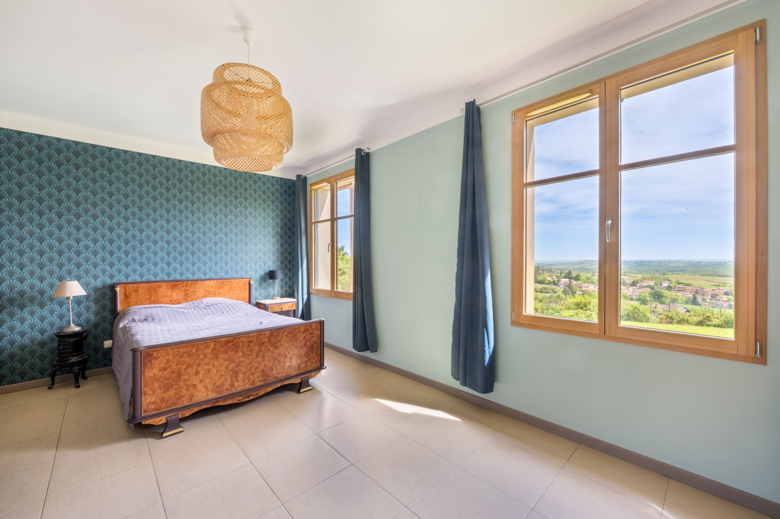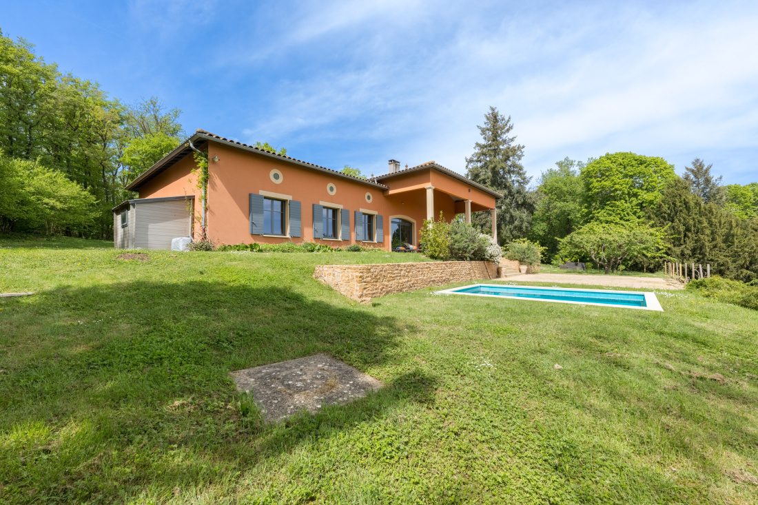 Vue splendide pour cette maison située en position dominante sur les hauteurs de Bagnols. D'une surface habitable de 312 m² (266 m² en loi Carrez), elle se déploie sur 2 niveaux (rez de chaussée + un étage). Au rez de chaussée, de plain pied sur l'extérieur, vaste entrée avec buanderie, grande cuisine équipée ouverte sur terrasses est et ouest, cellier, pièce de vie avec poêle à bois profitant d'une vue à couper le souffle, grand bureau. Un coin nuit comprenant 3 chambres dont 2 avec une salle d'eau, wc, une autre salle d'eau ainsi qu'un dressing. A l'étage, 3 grandes chambres, wc, salle d'eau. Une cave à vins, une cave de stockage, un garage complètent ce bien. Magnifique terrain de 5193 m² comprenant une partie jardin, 2 terrasses est et ouest, une partie boisée, piscine chauffée. Maison confortable, lumineuse, très belle exposition est/ouest. Tel : 06 76 83 92 04